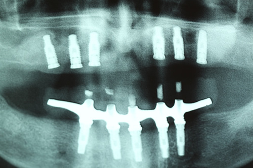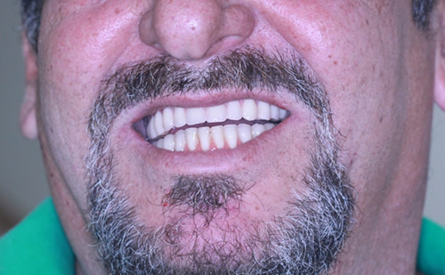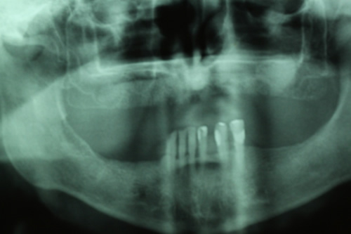 | Radiografia 8 meses após do enxerto e 1 dia após implantação | Carregamento com protocolo superior e inferior |